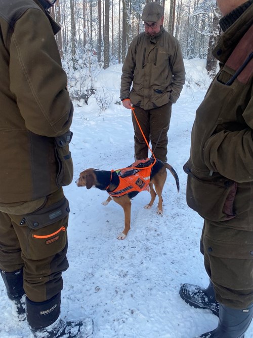 I ett snötungt landskap och med ett par grader kallt så släpptes tre stövare samtidigt i Bodaskog. Det resulterade i flera bra drev under dagen. Det var flera harar på benen och de visade också upp sig flertalet gånger men tyvärr utanför hagelhåll. Därefter grillades det korv som Gunnar Pettersson, Eksjö bjöd samtliga deltagare på. Gunnar är jakthundsansvarig på Svenska Kennel klubben och gick tillika hundförare under dagen. Passa på att bjuda med ungdomar och nya jägare ut i skog och mark på stövarjakt, det är både lärorikt och socialt.
